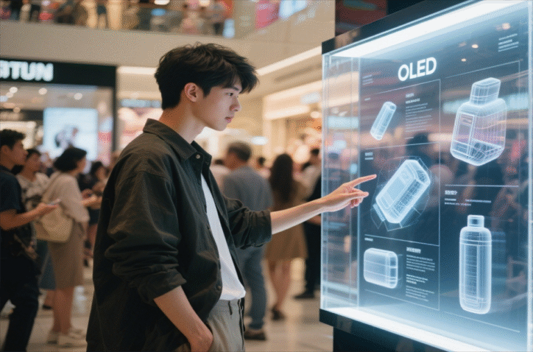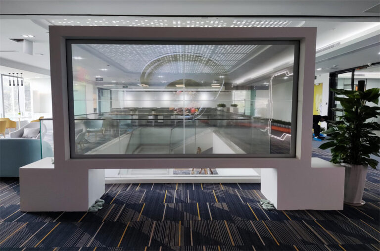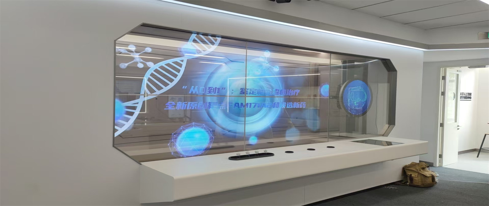 In exhibition hall design, the use of 2 × 2 splicing OLED transparent screens can create a highly technological visual display solution, suitable for various scenarios such as product display, interactive experience, and data visualization
