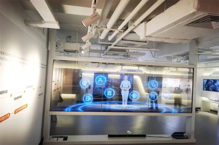 The 2×1 vertical transparent screen is a dimensional weapon in exhibition hall design – it can serve as both a “soft partition” for space division and a “superconductor” for content carrying. Suggest pairing it with an AI behavior analysis system to make the screen a “smart life form” that can perceive the audience’s emotions.