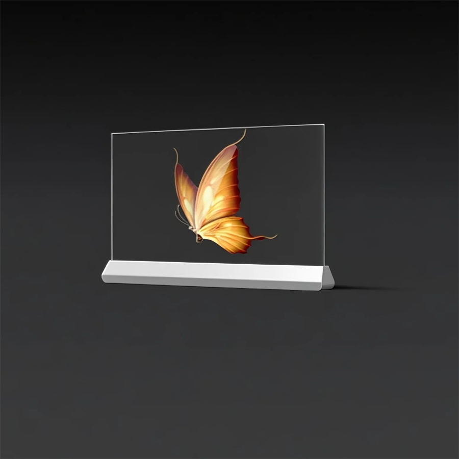 The 30 inch OLED transparent screen desktop version is a display with transparent characteristics and innovative design. OLED transparent screens are generally used for information display, advertising playback, or interactive navigation. They are a service window that breaks through boundaries, maintains spatial openness, attracts viewers' attention, enhances brand image, and are widely used in various corporate exhibitions, new retail, naked eye 3D, real estate sales, etc. Crossing the boundary between hyper virtual and reality, integrating the in screen and out of screen elements, helping you enjoy a smooth, dynamic, and transparent viewing experience.
