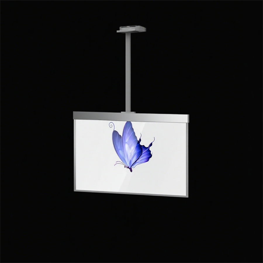 55 inch OLED transparent display screen application scenario: Adopting a lifting method, it can fully save ground space and is widely used in various public scenes such as shopping malls, traffic management, art museums, cultural museums, and shop windows.