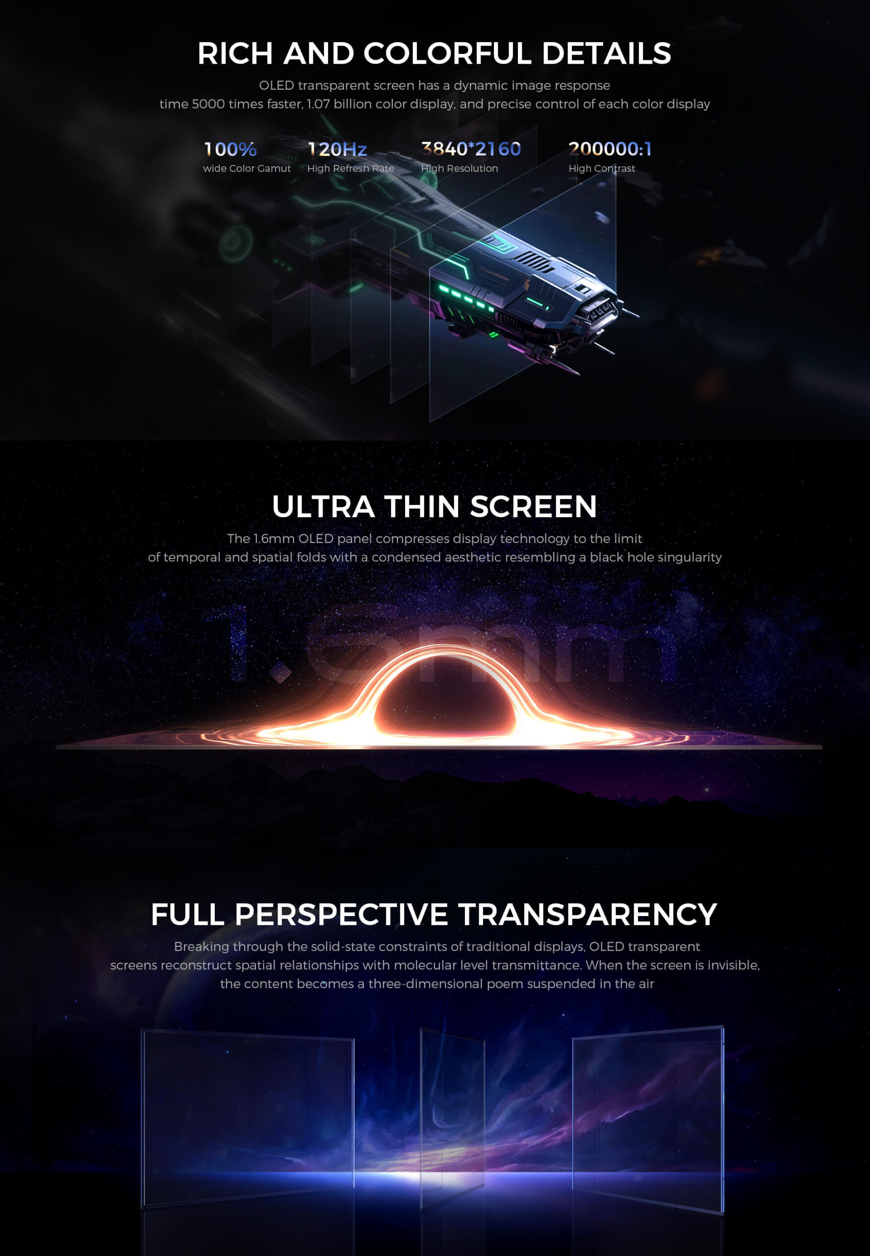 OLED transparent screen 55 inch - vertical version is a new high-tech display technology that brings new ways of display and interaction to more industries. Virtual welcome screens have the advantages of high transparency, strong interactivity, and ease of operation, making them an ideal choice for future digital displays.