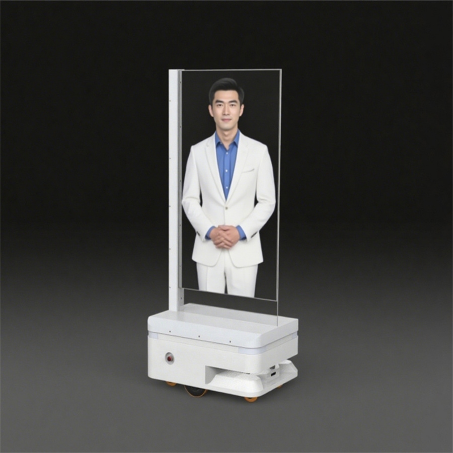 Transparent screen technology: Transparent screen is the core component of mobile digital robot transparent screen, using high transparency display materials. OLED transparent screen, through its self luminous characteristics, enables images to be displayed clearly on the screen, while the background can be revealed through the screen. This technology provides an ideal platform for showcasing digital humans. Artificial Intelligence Technology: The transparent screen of mobile digital robots integrates artificial intelligence technologies such as facial recognition and speech recognition, enabling human-machine interaction functions. Users can interact with the screen through voice, gestures, and other means to obtain information, understand display content, and more.